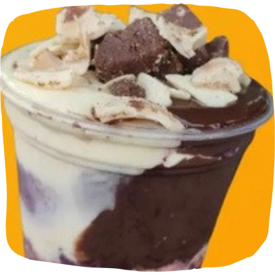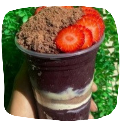 Açaí cremoso com uma combinação irresistível de leite em pó, leite condensado, nutella e pedaços de chocolate ouro branco.