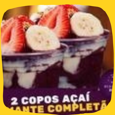 2 Deliciosos Açaí de qualidade no copo de 300ml, com leite condensado, morango, banana e brigadeiro moça.