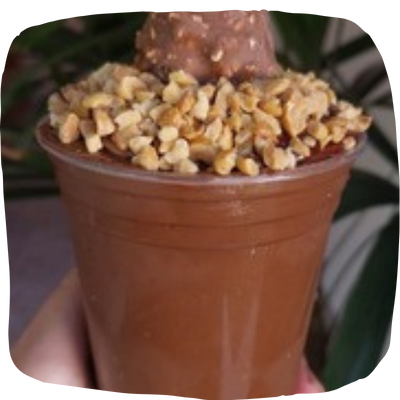 Irresistível Açaí com nutella, leite em pó, leite condensado e finalizado com amendoim triturado, nutella e bombom ferrero rocher